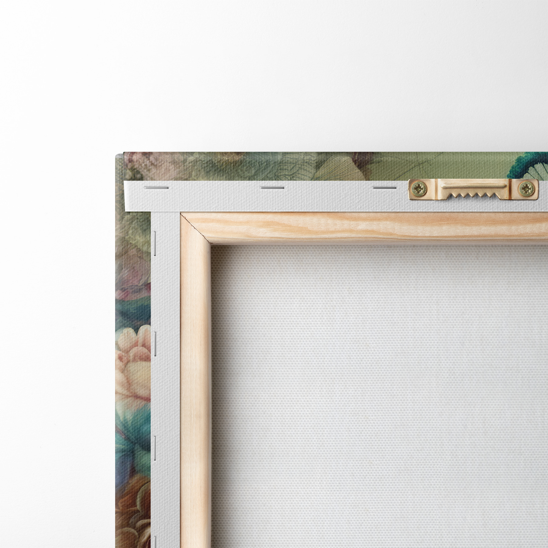 Om het doek op te spannen op spielatten zonder de afbeelding te beschadigen, gebruiken we gespiegeld beeld.
