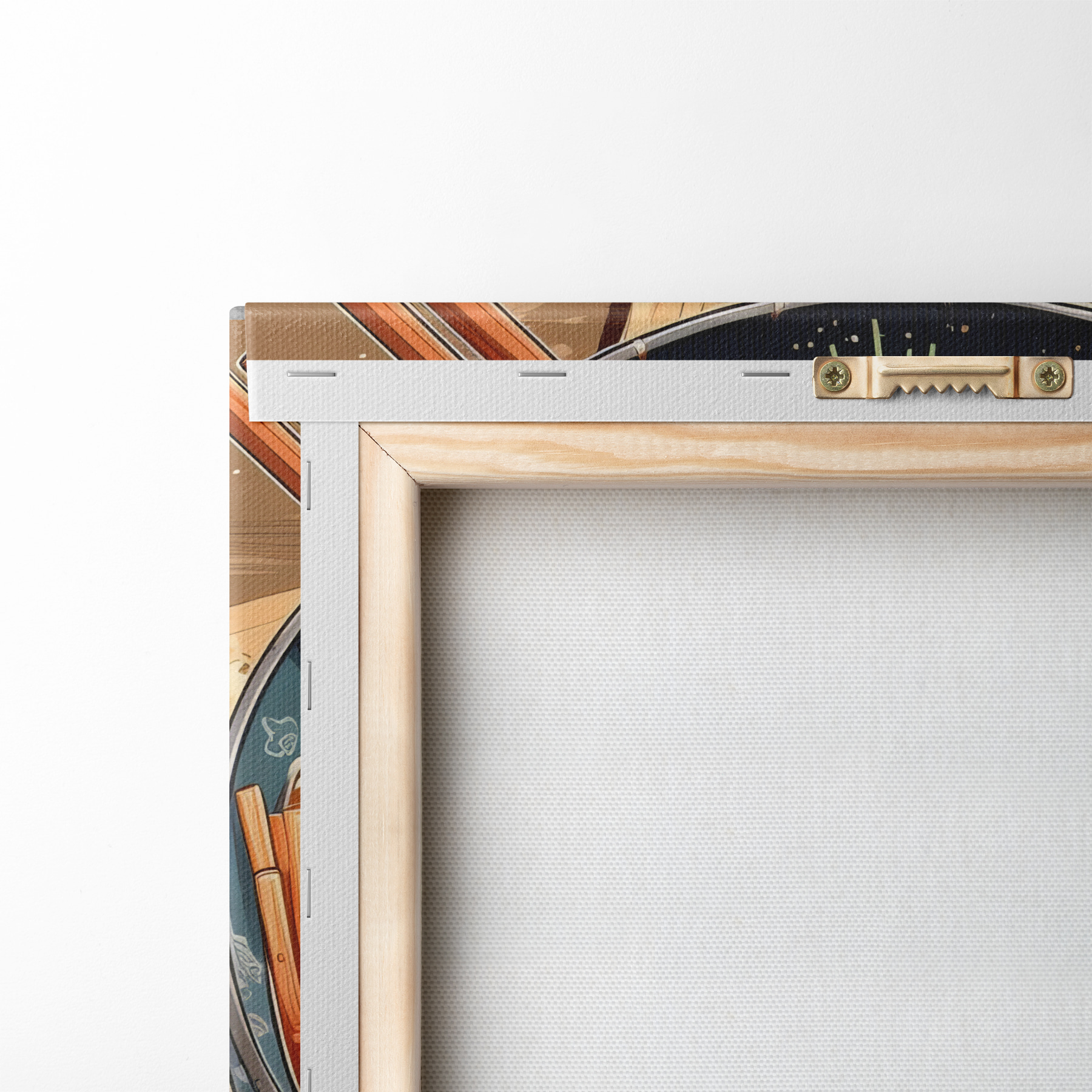 Om het doek op te spannen op spielatten zonder de afbeelding te beschadigen, gebruiken we gespiegeld beeld.