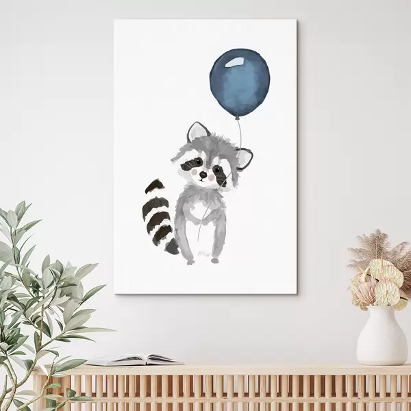 Schilderij Kleine wasbeer die een blauwe ballon vasthoudt Art. s33717