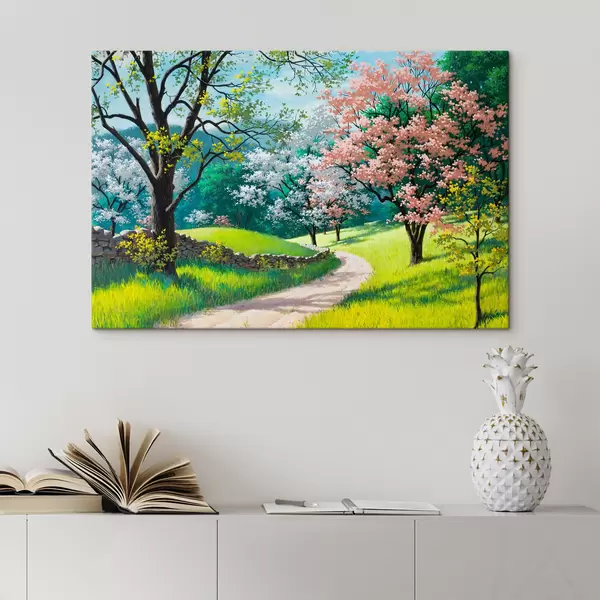 Schilderij Bloeiende fruitbomen, dorpspad Art. s15350