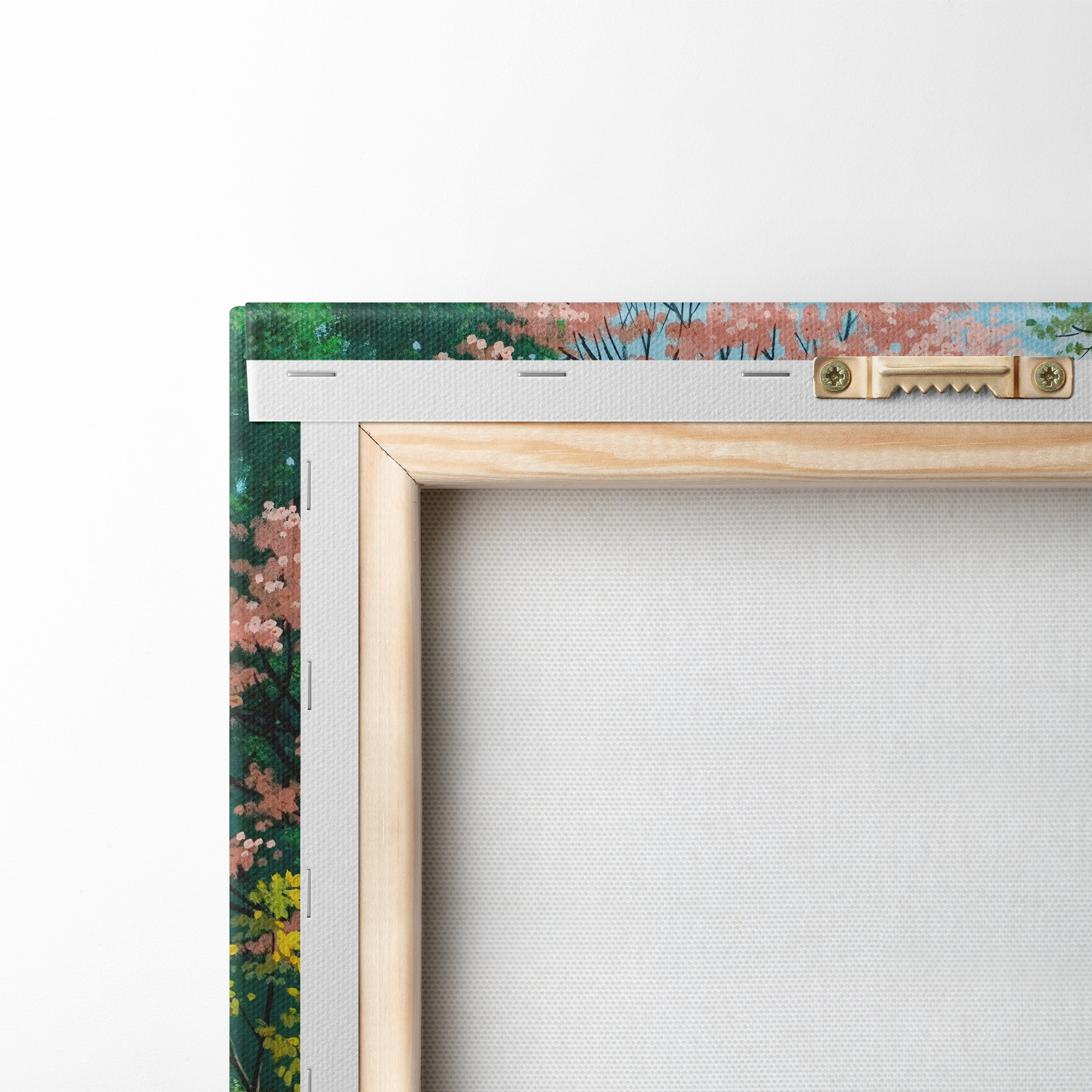 Om het doek op te spannen op spielatten zonder de afbeelding te beschadigen, gebruiken we gespiegeld beeld.