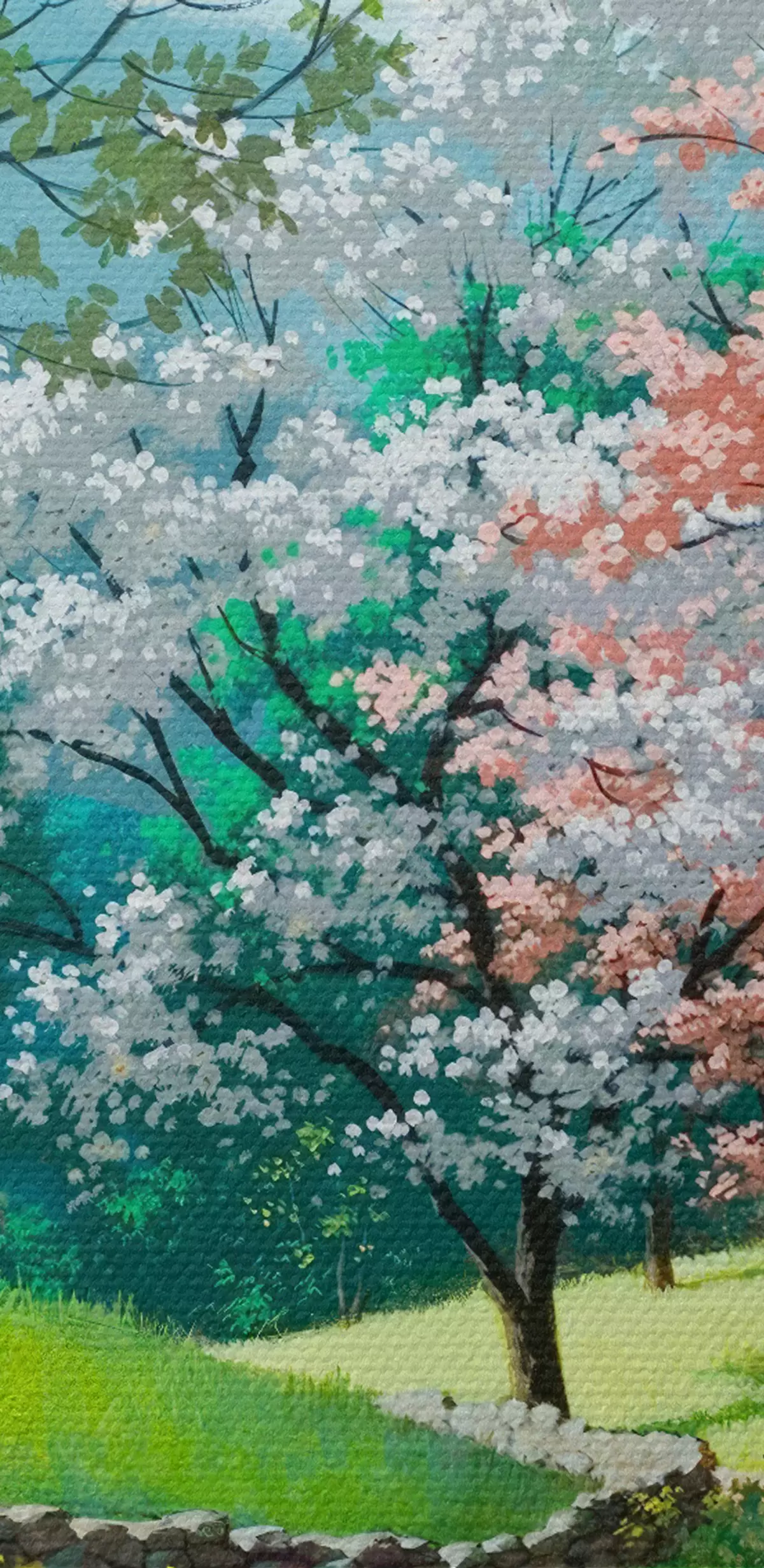 Schilderijen Bloeiende fruitbomen, dorpspad s15350