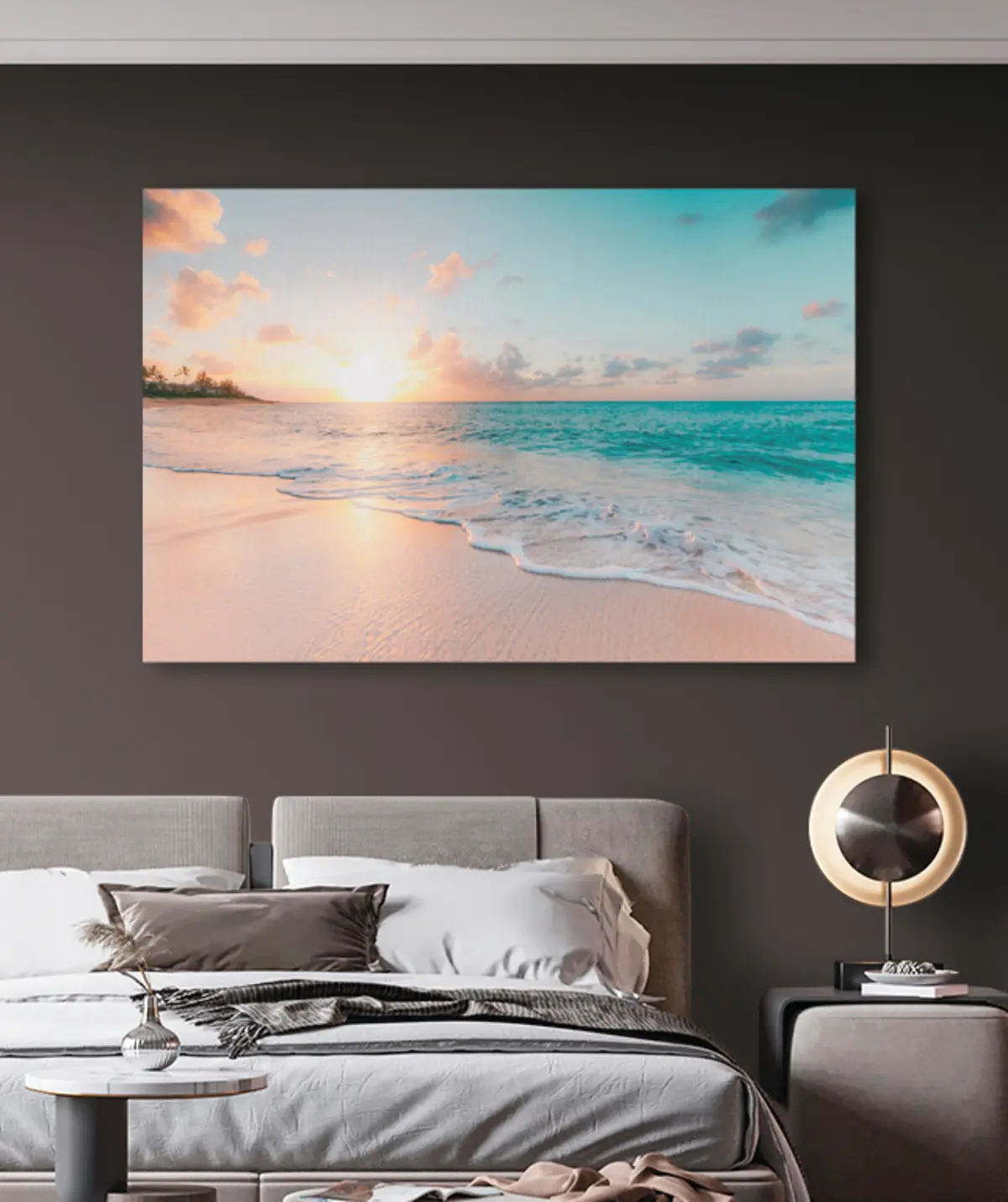 Je kunt het schilderij ophangen aan schroeven. Hiervoor leveren we bevestigingen bij onze foto's, zodat je de foto gemakkelijk kunt ophangen.