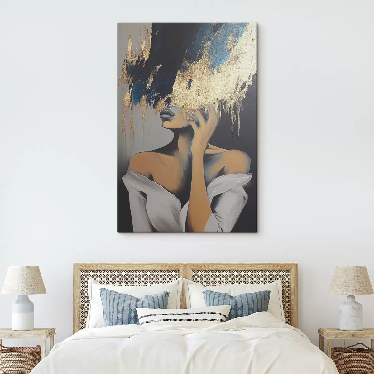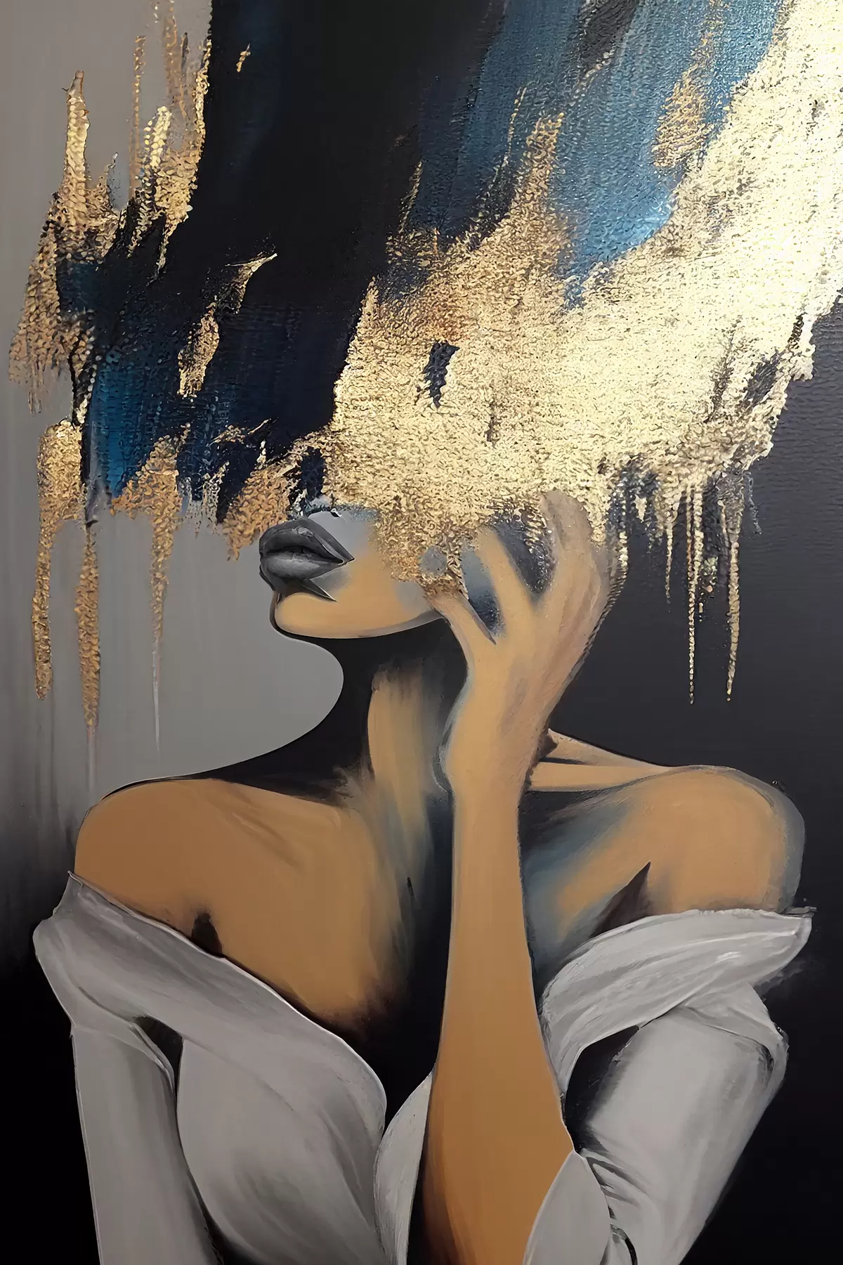 Schilderij Jonge vrouw met zwarte verf op haar gezicht Art. s34863