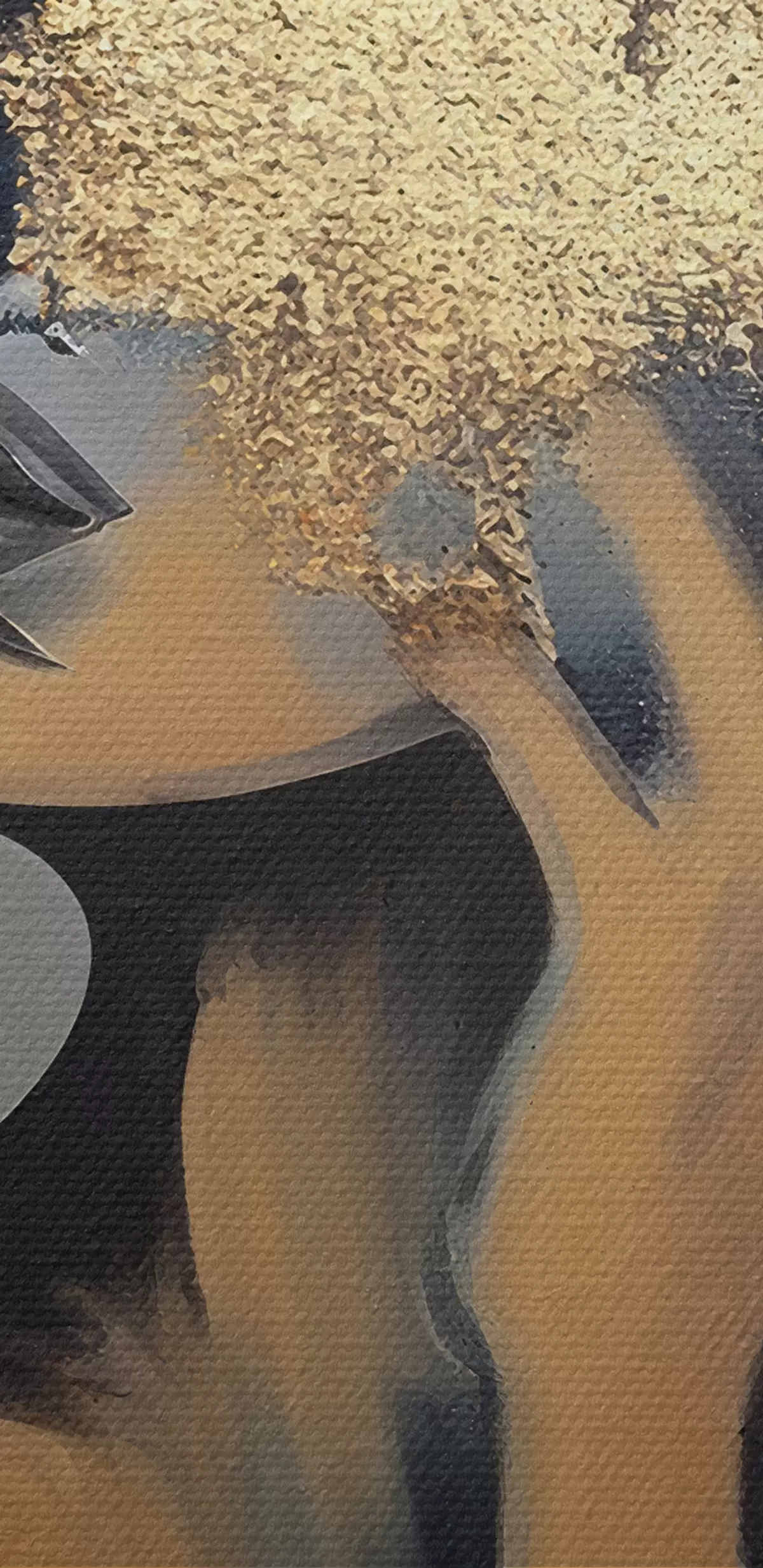 Het schilderij kan direct na ontvangst worden opgehangen. Het schilderij wordt opgespannen op een 2 cm breed houten spieraam.