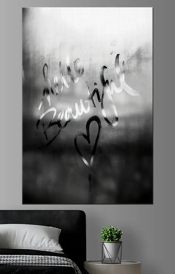 Je kunt het schilderij ophangen aan schroeven. Hiervoor leveren we bevestigingen bij onze foto's, zodat je de foto gemakkelijk kunt ophangen.