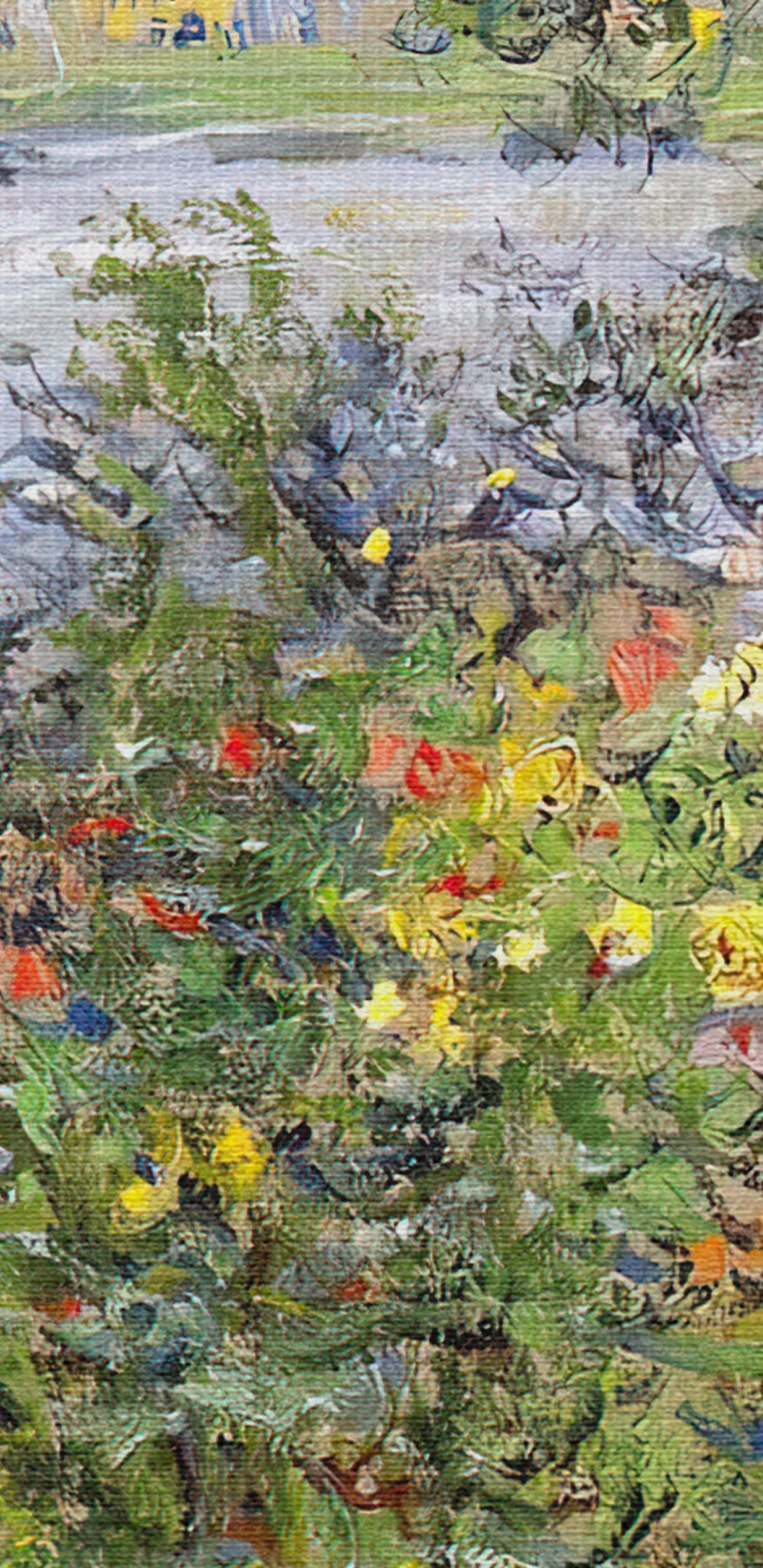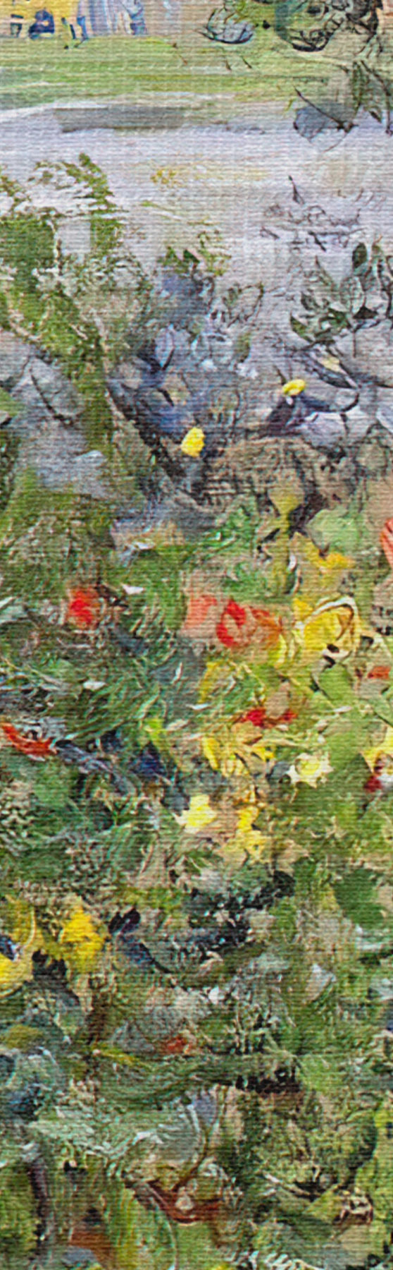 Het schilderij kan voorzichtig worden schoongeveegd met een droge zachte doek of spons; het wordt niet aanbevolen om natte producten te gebruiken. Het gebruik van een vochtige spons is alleen toegestaan als het schilderij gevernist is.