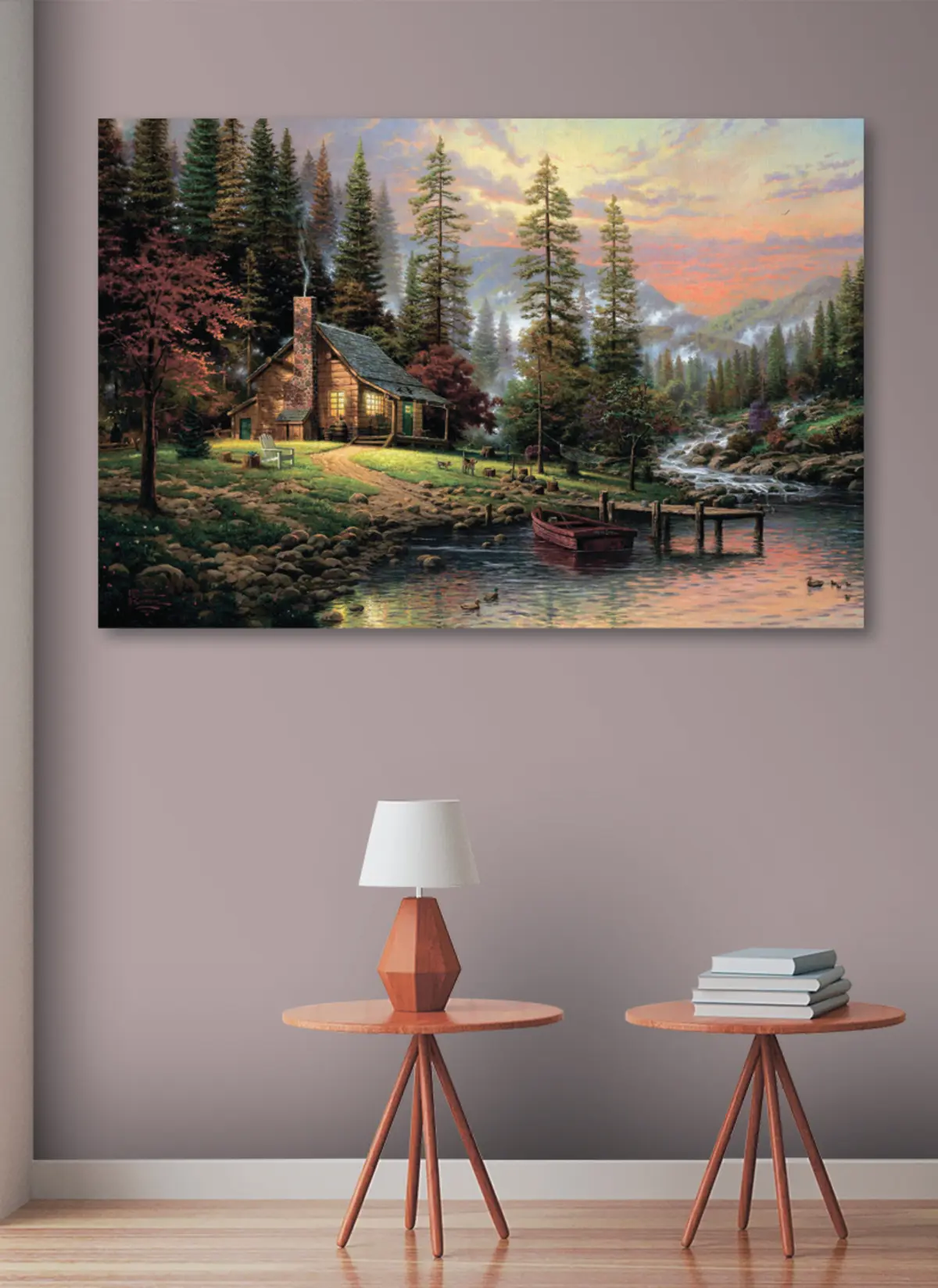Je kunt het schilderij ophangen aan schroeven. Hiervoor leveren we bevestigingen bij onze foto's, zodat je de foto gemakkelijk kunt ophangen.