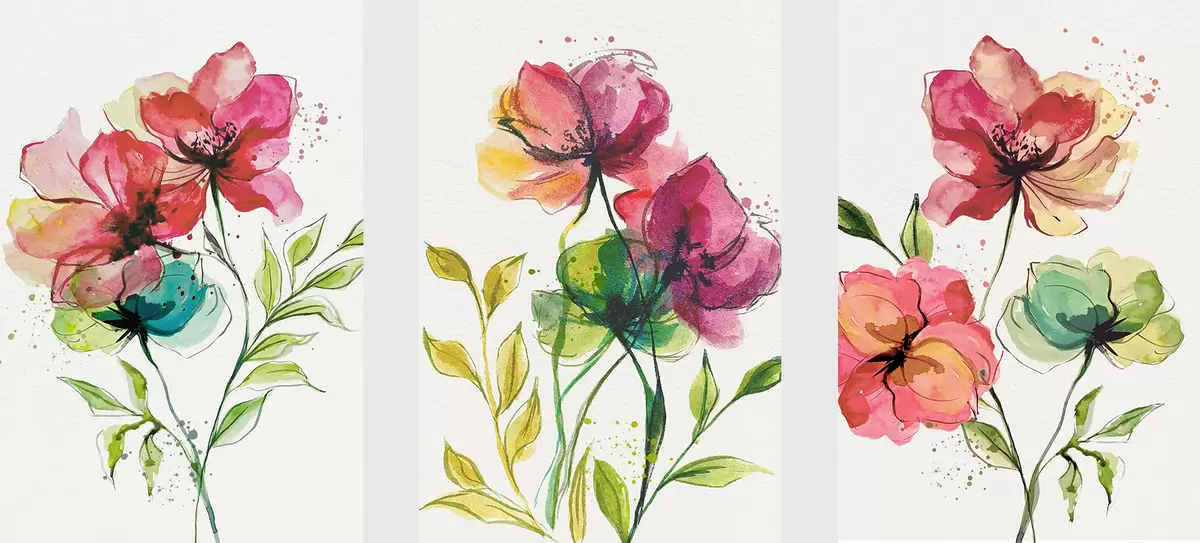 Schilderij Zachte aquarelbloemen met verfspatten Art. m00340