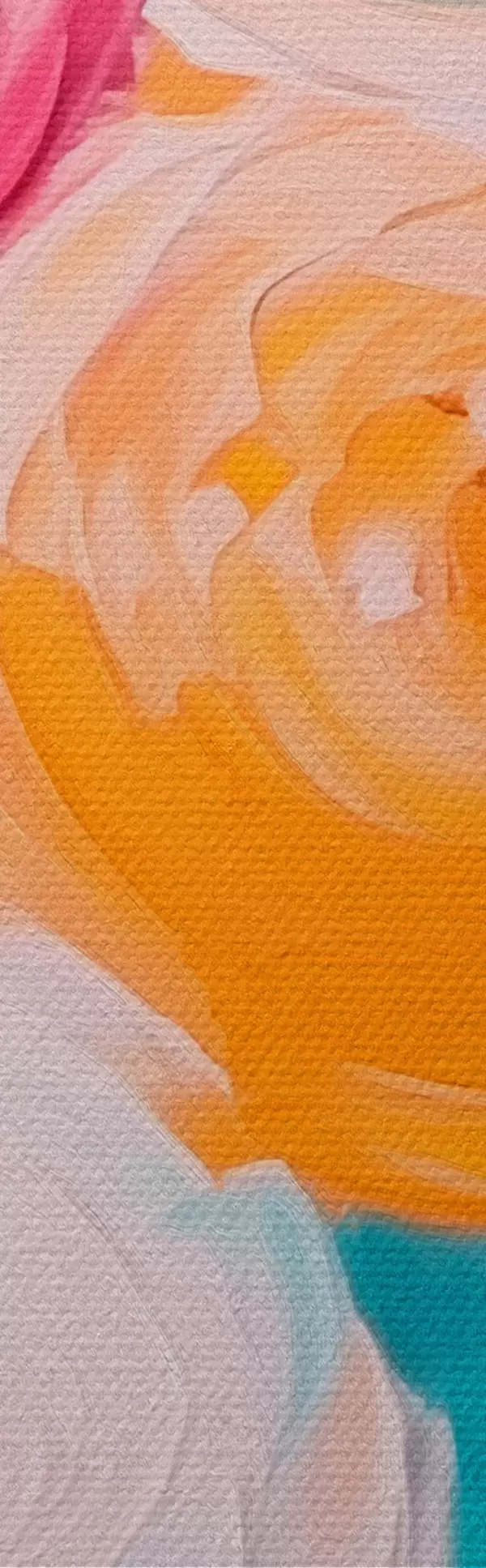 Het schilderij kan direct na ontvangst worden opgehangen. Het schilderij wordt opgespannen op een 2 cm breed houten spieraam.