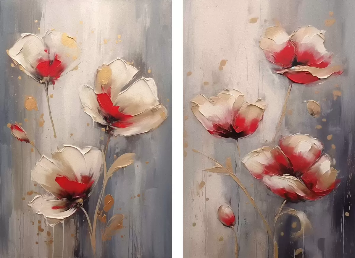 Schilderijen Witte en rode bloemen m00399