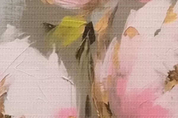 De fijne weving van draden op dit doek lijkt op het oppervlak van professionele schildersdoeken.