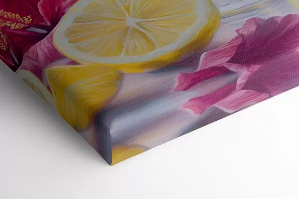 Schilderij Cocktails met hibiscusbloemen en citroenen, zomer, sappig, aquarelstijl Art. m00446