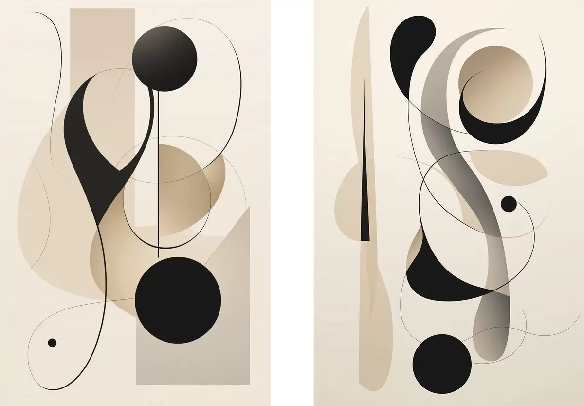 Schilderij Abstracte compositie met rondingen en vormen Art. m00538