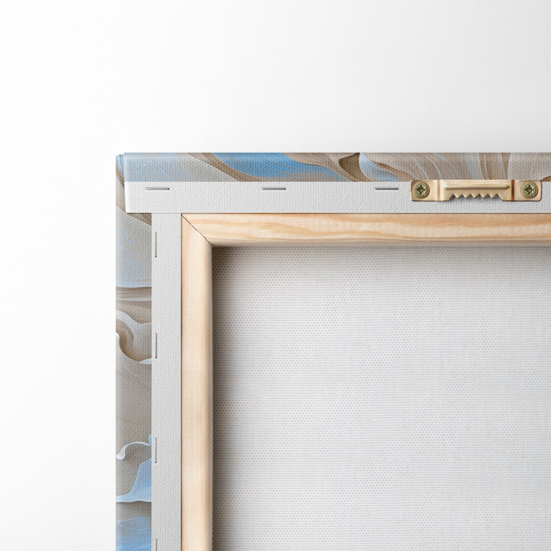 Om het doek op te spannen op spielatten zonder de afbeelding te beschadigen, gebruiken we gespiegeld beeld.