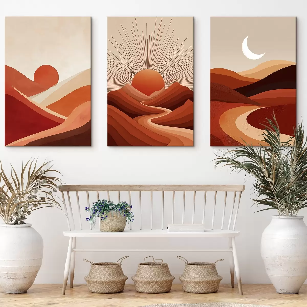 Je kunt het schilderij ophangen aan schroeven. Hiervoor leveren we bevestigingen bij onze foto's, zodat je de foto gemakkelijk kunt ophangen.