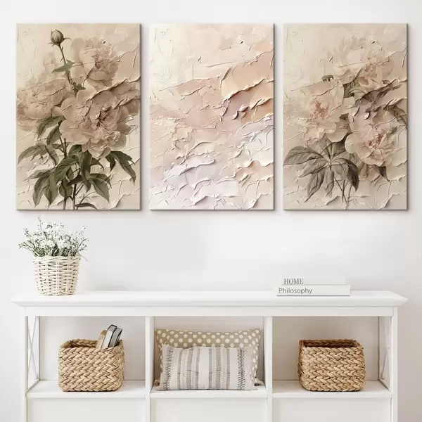 Schilderij Boeket pioenrozen en verfstreekeffect Art. m00616