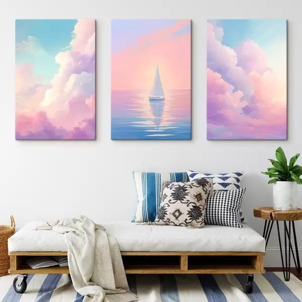 Schilderijen Zeilboot op zee tegen een achtergrond van wolken m00619