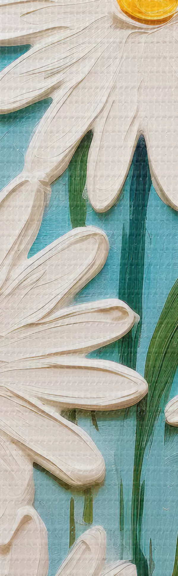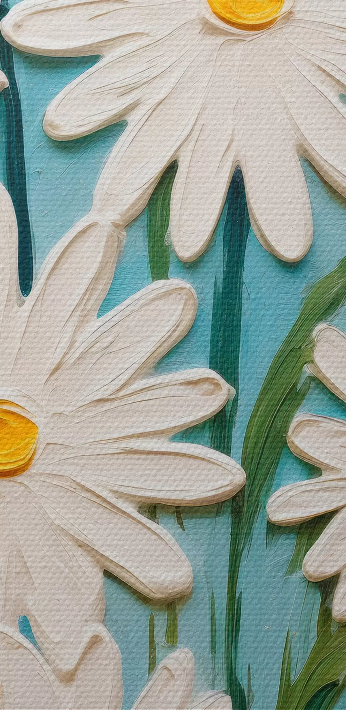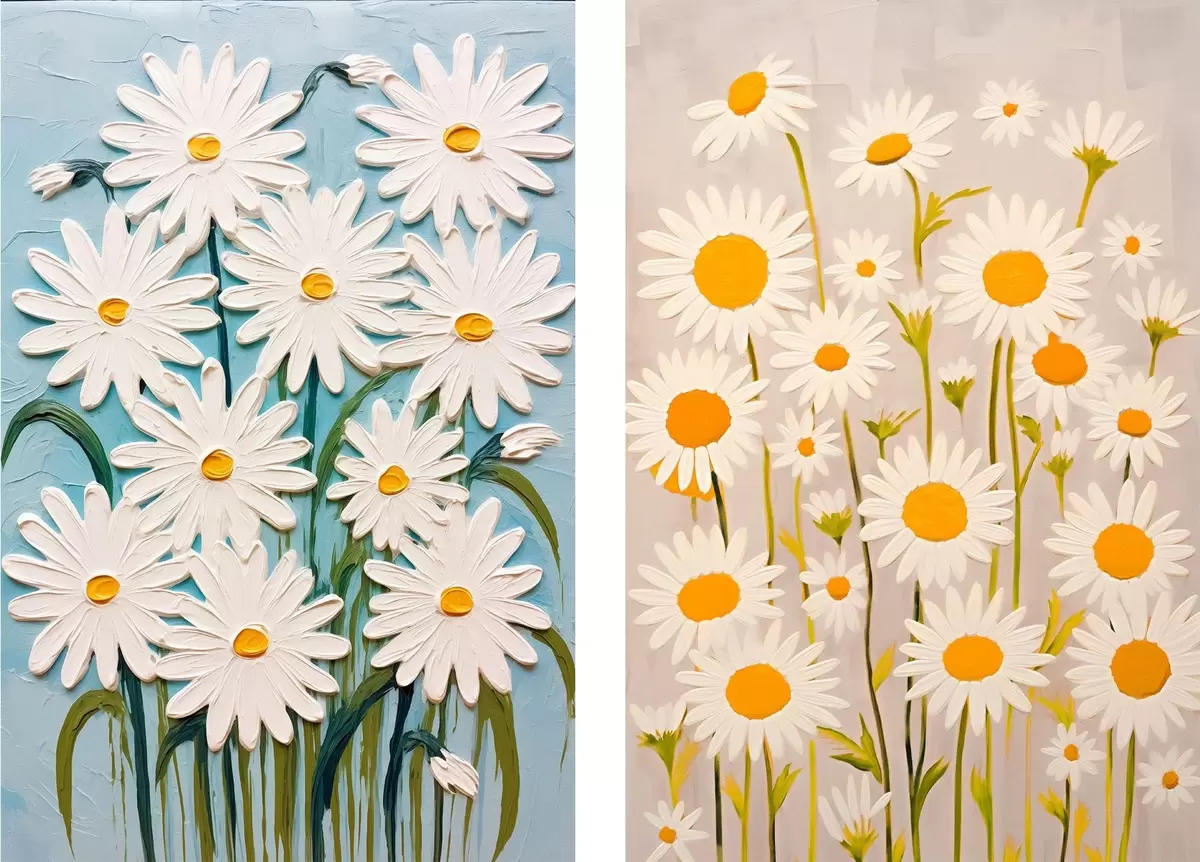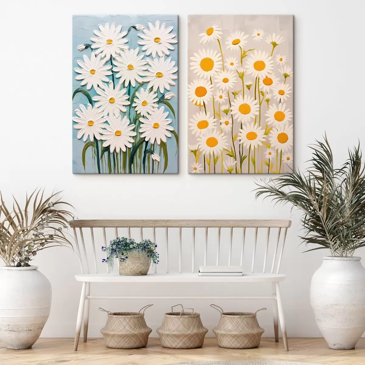 Schilderij Lentefrisheid: tweeluik met volumineuze margrieten in impasto stijl Art. m00633