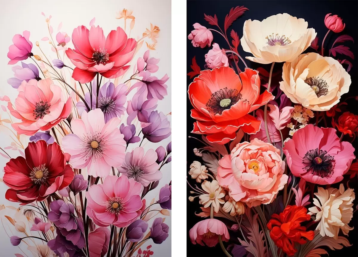 Schilderij Boeketten van klaprozen in pastelkleuren en rijke tinten Art. m00661