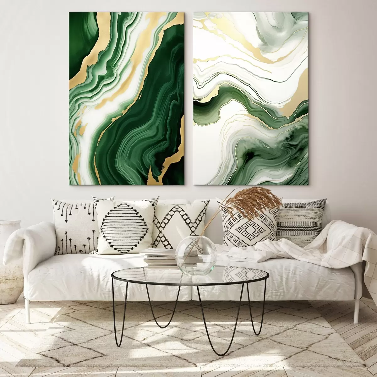 Schilderijen Groen en wit marmer met oranje-gele aderen m00688