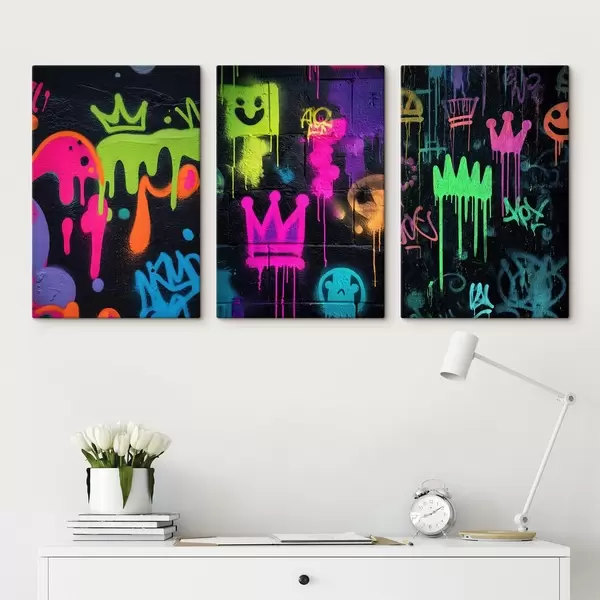 Schilderijen heldere straatkunst op een donkere achtergrond m00703