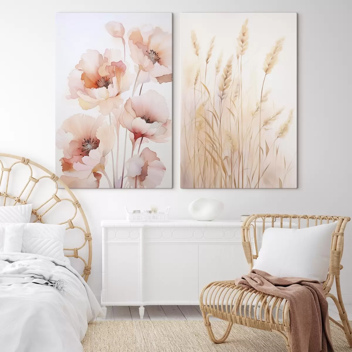 Schilderijen Klaprozen en aartjes imitatie aquarel m00723
