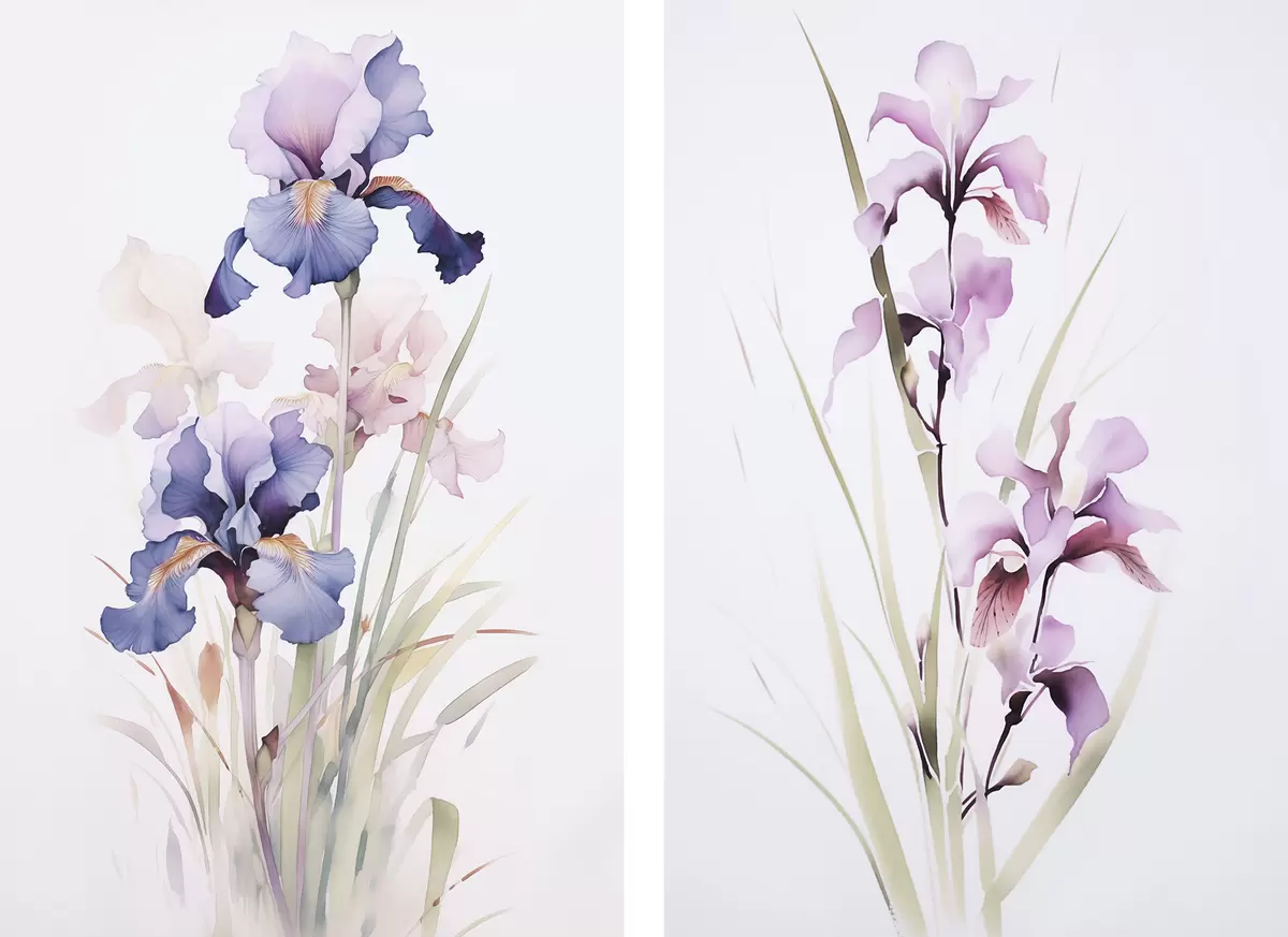 Schilderij Irissen imitatie van aquarel Art. m00724