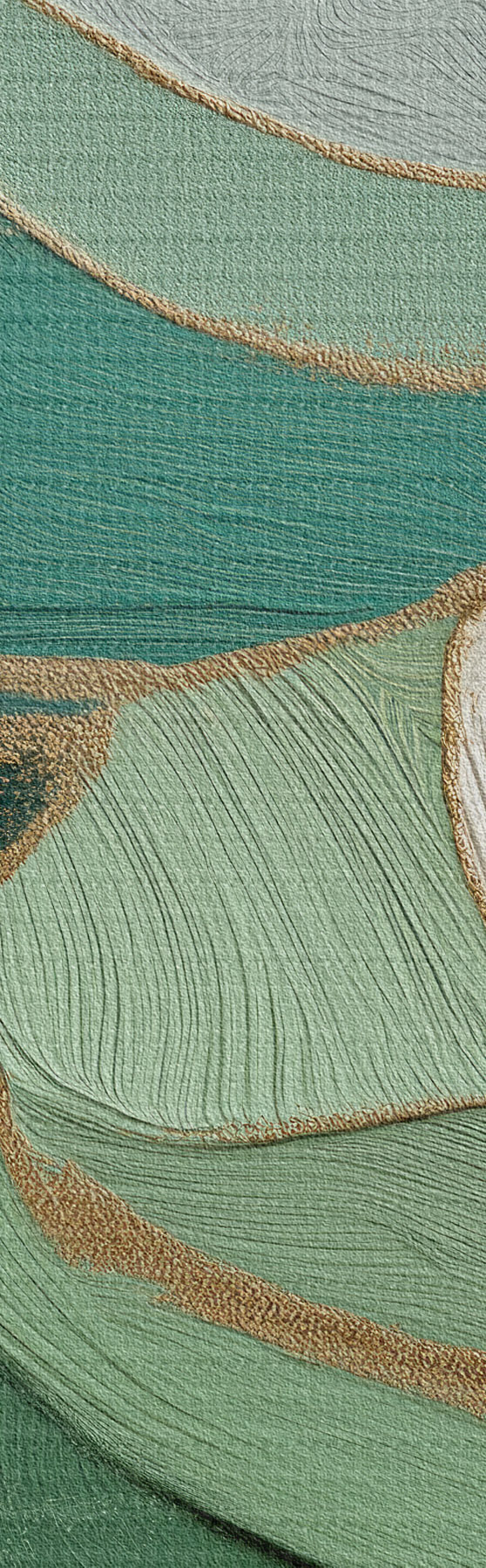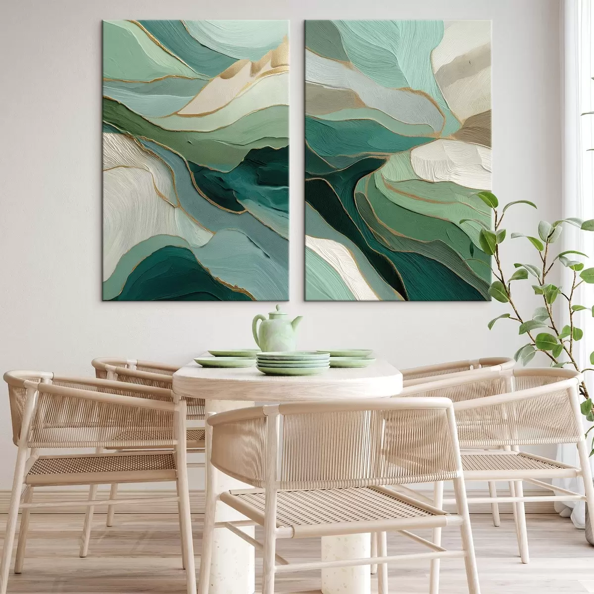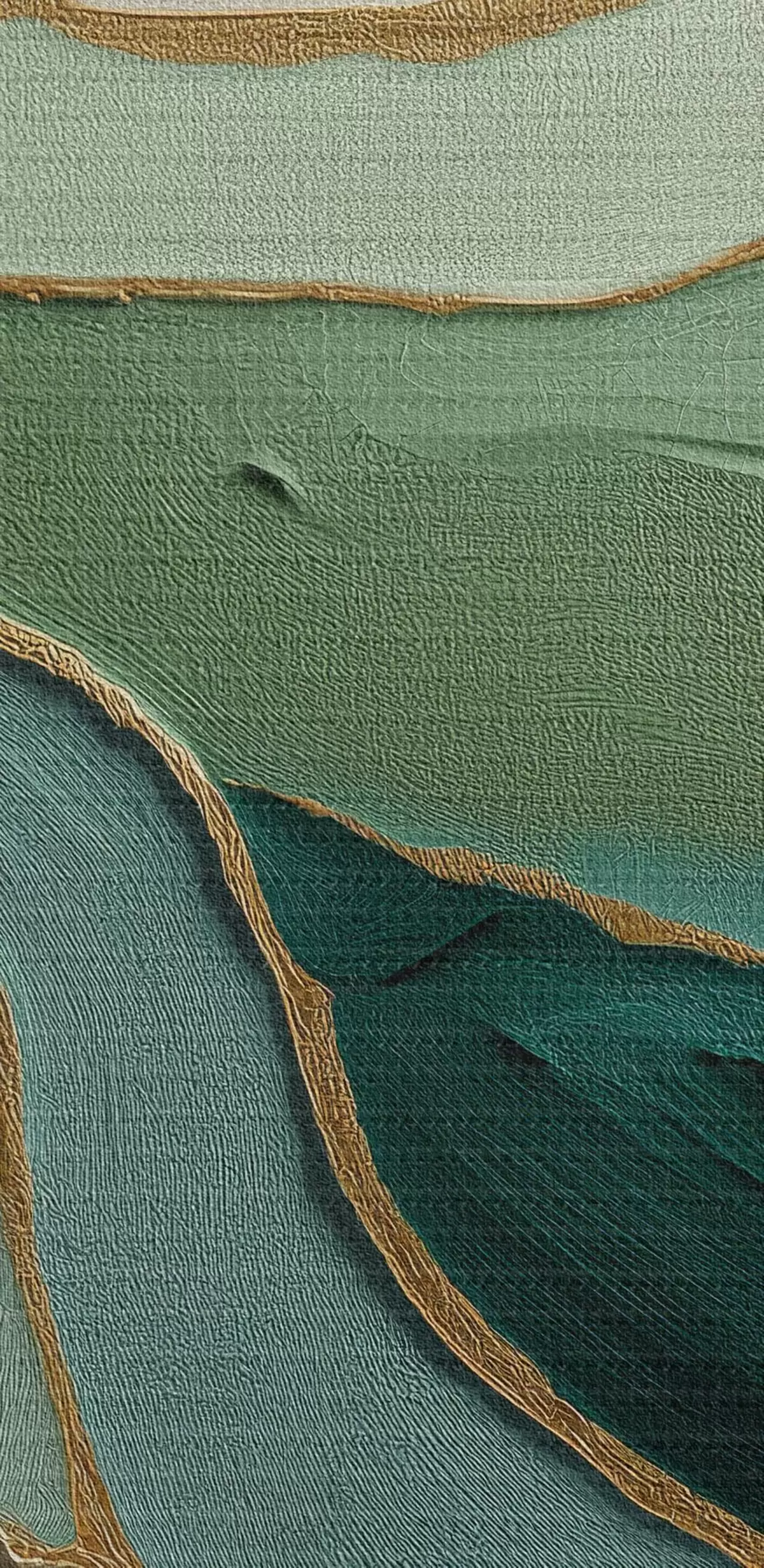 Schilderij Smaragdgroene gelaagde abstractie met een gele omtrek Art. m00766