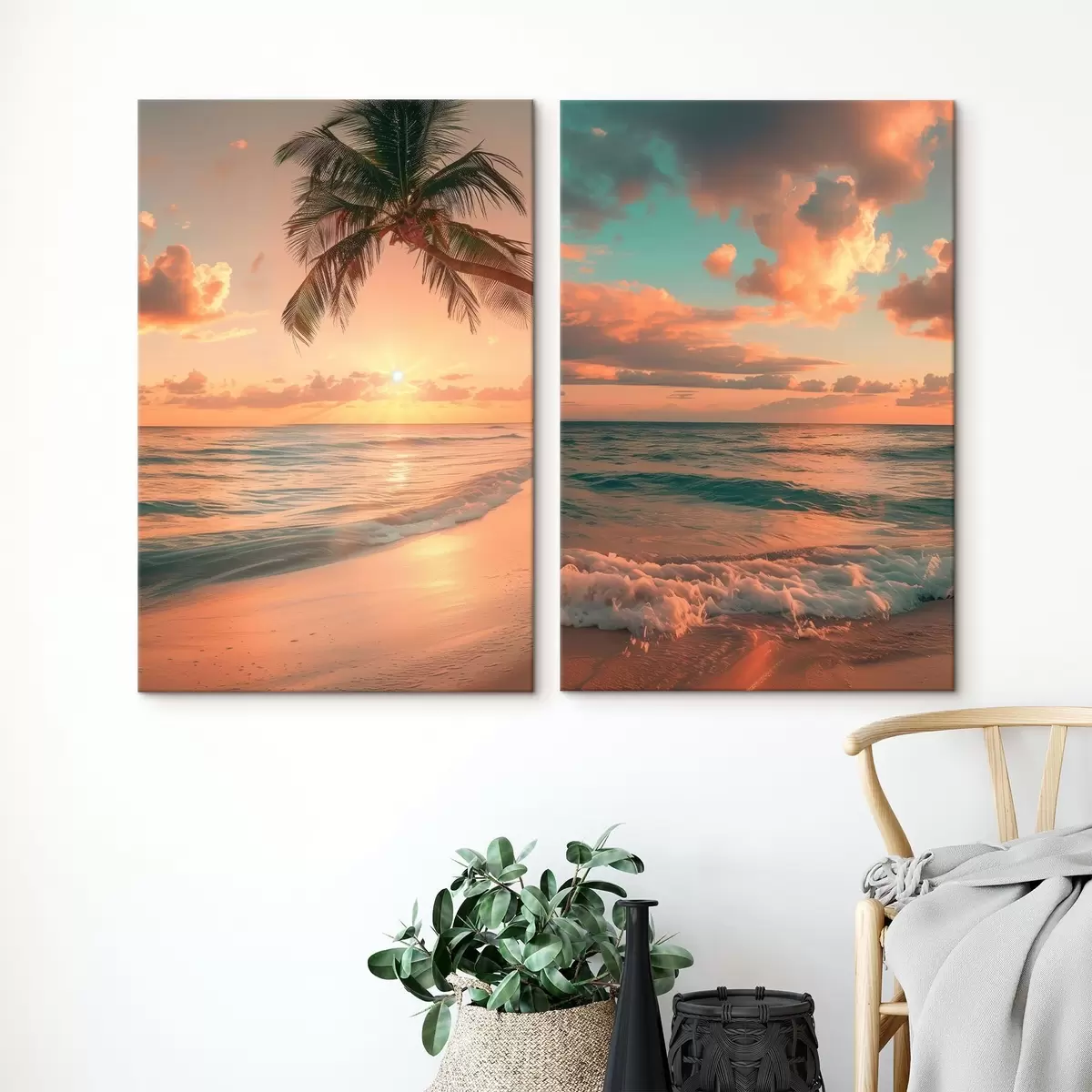 Schilderijen Zonsondergang aan de kust met uitzicht op de golven m00787