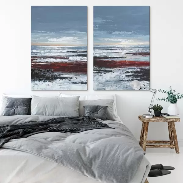 Het schilderij kan direct na ontvangst worden opgehangen. Het schilderij wordt opgespannen op een 2 cm breed houten spieraam.