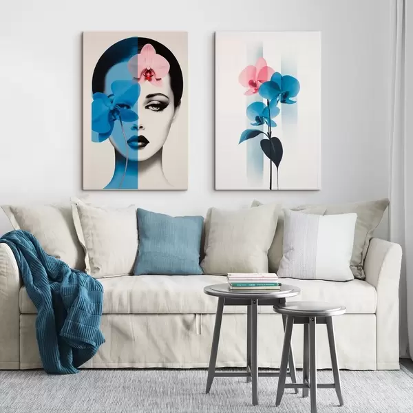 Schilderijen Abstract kunstportret van een vrouw met orchideeën m00818