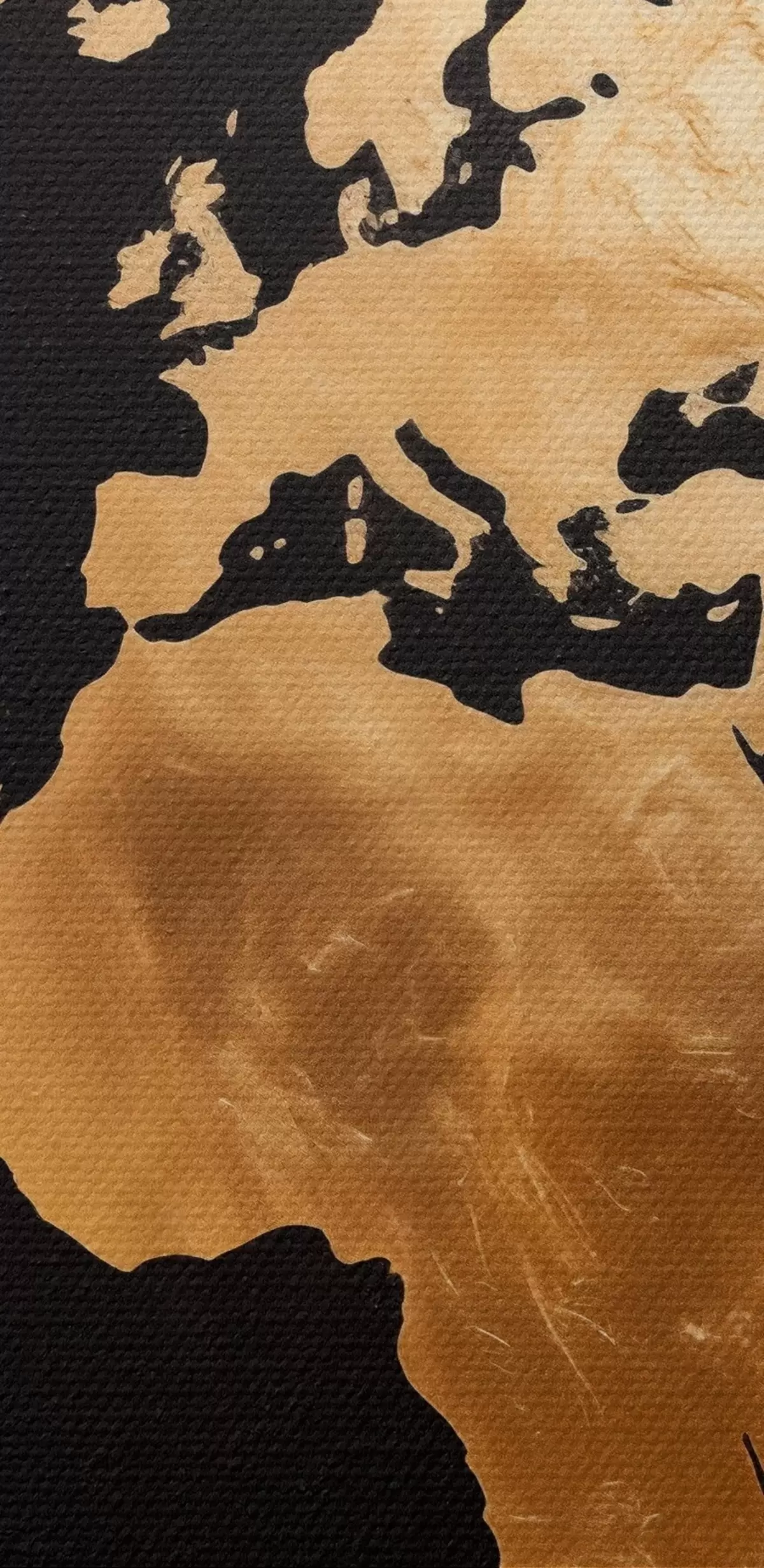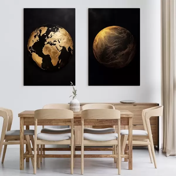 Schilderijen Geabstraheerde wereldbol en planeet met textuur op een zwarte achtergrond, moderne minimalistische kunst m00827