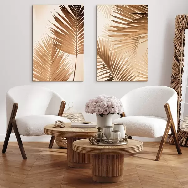 Schilderij Palmbladeren in bruine tinten, neutrale achtergrond, minimalistische stijl, natuurlijke belichting, tropische sfeer Art. m00880