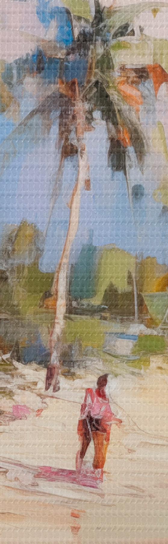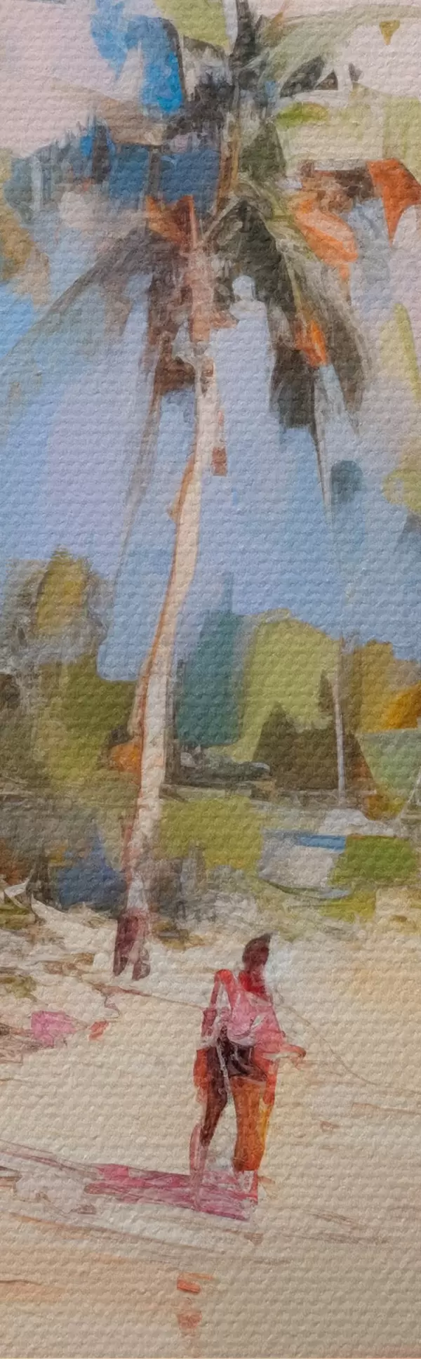 Schilderij Abstract landschap, een strand met palmbomen, heldere zonnige dag met een blauwe lucht en enkele wolken Art. m00885