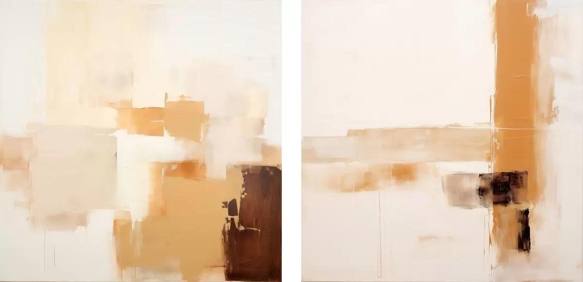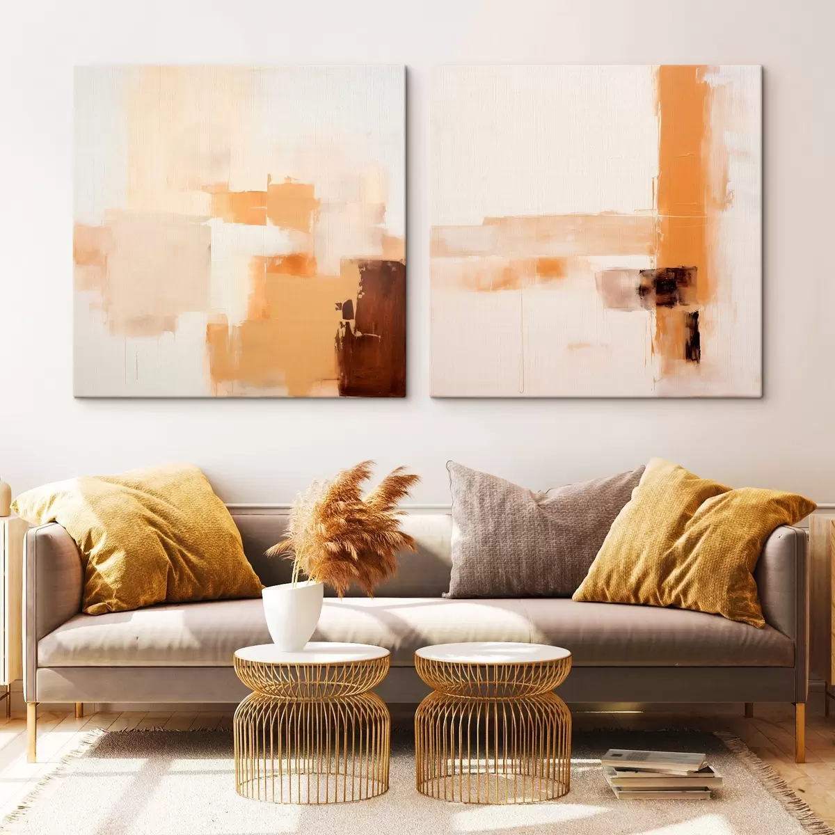 Schilderijen Abstracte tweedelige compositie in beige en bruin m00891