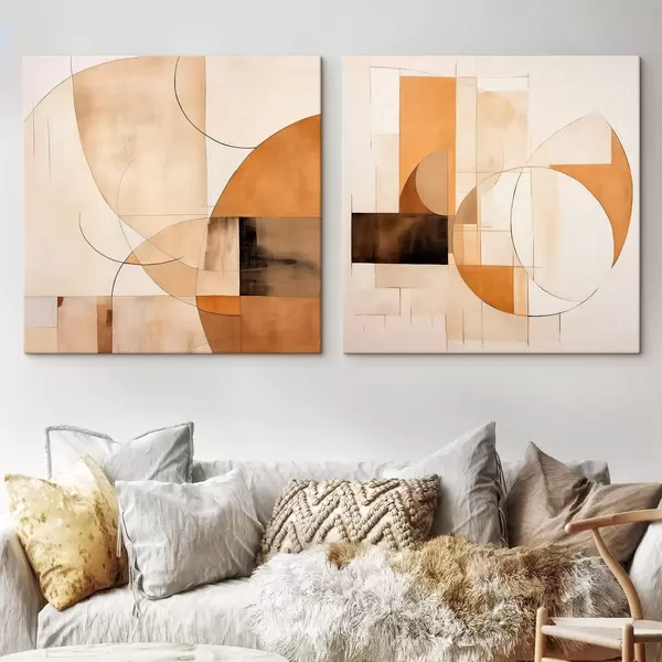 Schilderij Moderne abstractie met cirkels en lijnen in koffiekleuren met melk Art. m00898