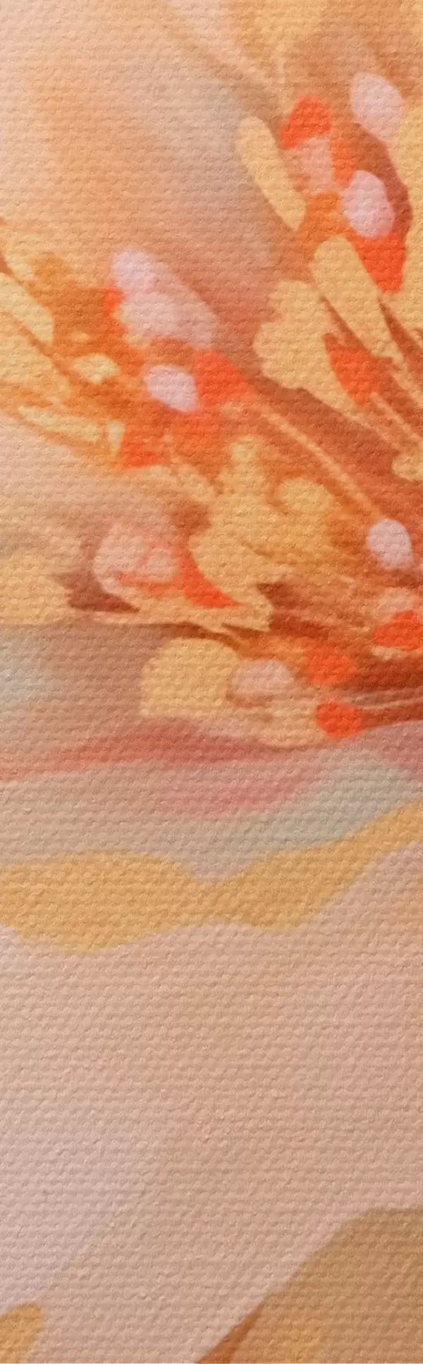 Het schilderij kan direct na ontvangst worden opgehangen. Het schilderij wordt opgespannen op een 2 cm breed houten spieraam.