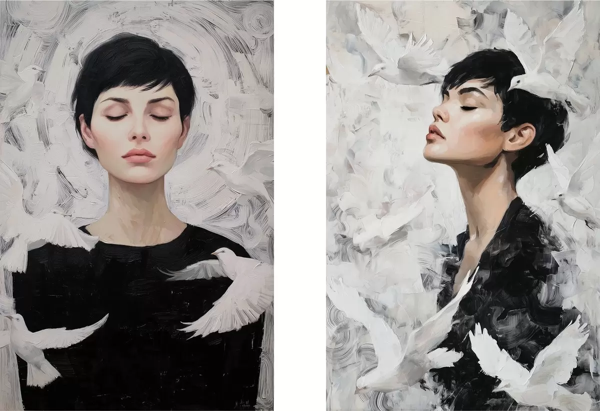 Schilderij Vrouw met duiven Art. m00923