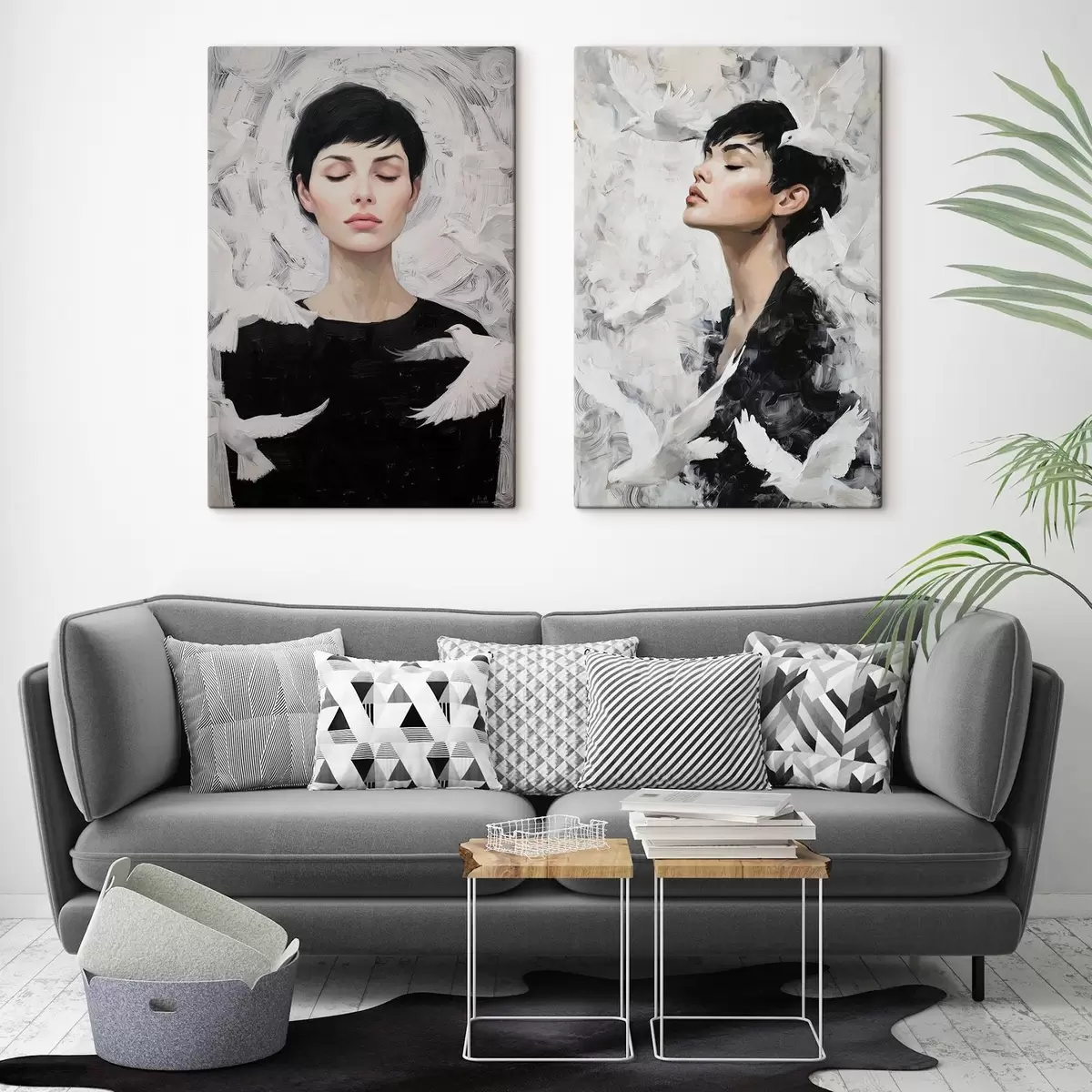 Schilderijen Vrouw met duiven m00923