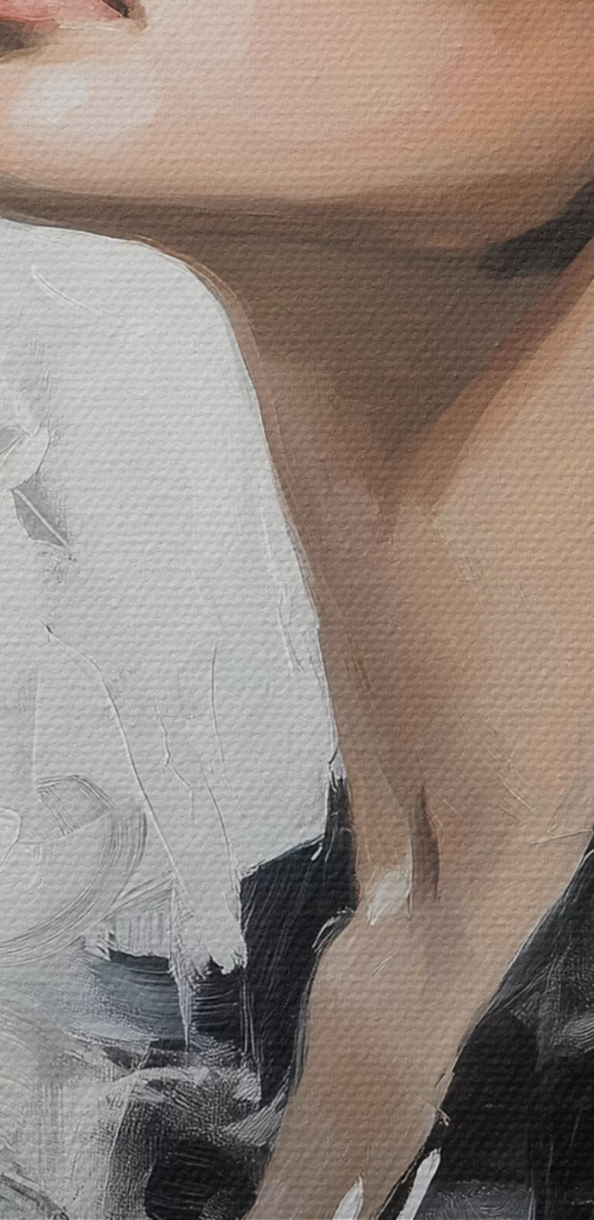 De fijne weving van draden op dit doek lijkt op het oppervlak van professionele schildersdoeken.