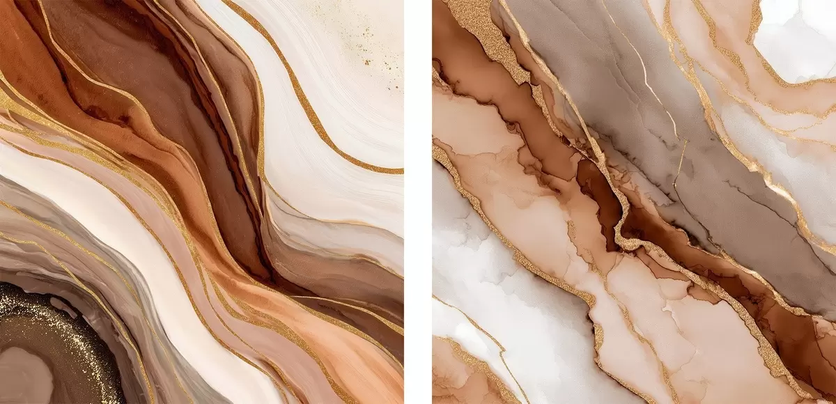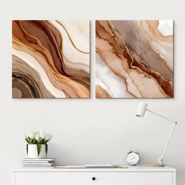 Schilderijen Tweedelige abstracte compositie met vloeiende gelaagde overgangen m00982