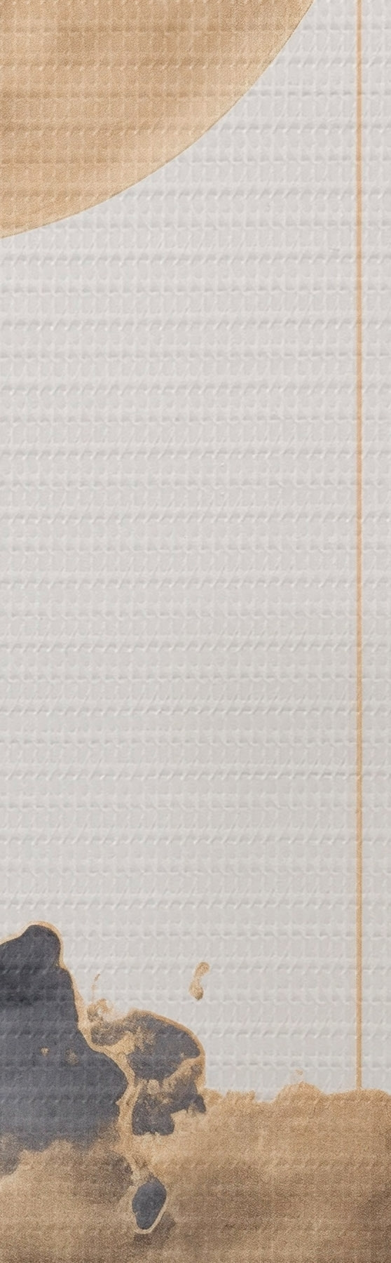 Schilderij Textuurdecoratieve planeet in de ruimte met gele lijnen en stippen, abstracte stijl, minimalistisch en modern Art. m01014