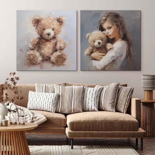Schilderijen Meisje met een speelgoedbeer, imitatie schilderij m01029