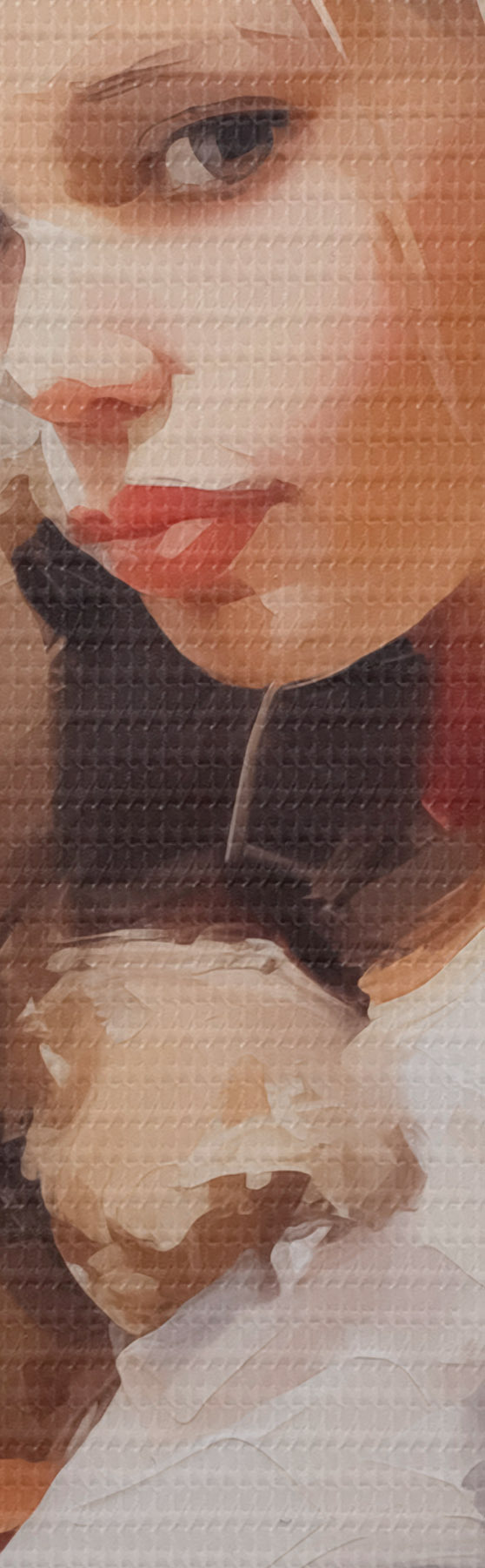 Er zijn drie soorten materiaal te bestellen: Economic Canvas - een dicht en duurzaam materiaal voor digitaal printen, identiek aan schildersdoek, waterdicht oppervlak, realistische weergave van details, materiaal met gemiddelde korrel. Premium Canvas - de textuur lijkt op die van schildersdoek (verweven kleine draden). Zachte, gedetailleerde reproductie van de afbeelding op een mat oppervlak. Eco-Premium - hoogwaardige 100% katoenen stof. Dankzij de natuurlijke katoenvezels is het materiaal duurzaam en slijtvast. Uitstekende kleurweergave en detail.