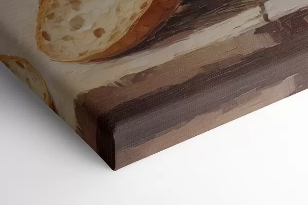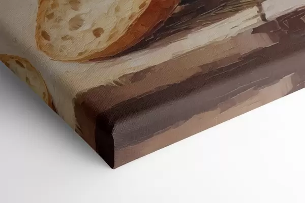 Schilderijen Olijftakken in een vaas, brood en een fles olie, imitatie schilderij m01035