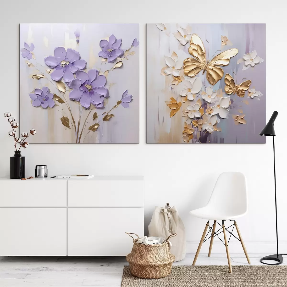 Schilderij Schilderij met imitatie van vlinders en bloemen Art. m01046