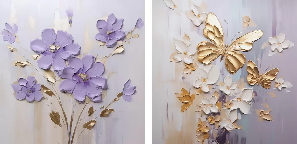 Schilderij Schilderij met imitatie van vlinders en bloemen Art. m01046
