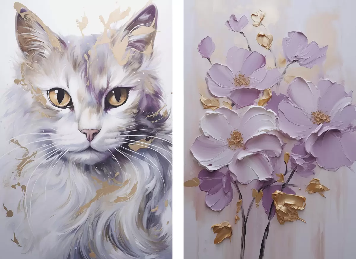 Schilderij Abstracte bloemen en een kat Art. m01056