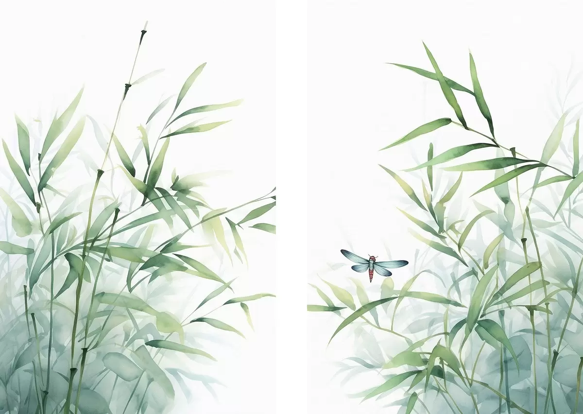 Schilderijen Bamboeplanten, imitatie aquarel m01062